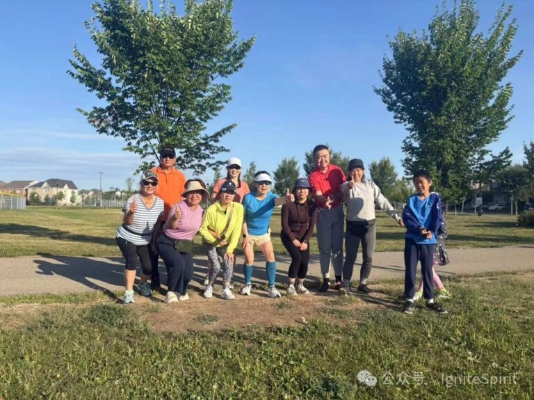 💙Coach Lily, wearing a lake blue sportswear and knee-high sports socks of the same color, was waiting for everyone at the reserved location early. Coach Lily came from Mississauga specifically to lead everyone in the “group run”. Her running team in Mississauga always has more than 30 people. Her “small low high, fixed heart rate” running method has helped many friends who did not dare to try running before because of age, body shape, weight, chronic diseases and other reasons! Friends who participated in the first run in Okumura this time also want to learn in person and find the correct and safe running method to get their bodies moving! 😊🌿