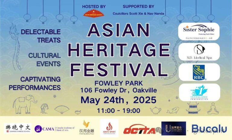 5月24日在奥克维尔福利公园举行的亚洲文化节是您可以参与的第一站。带上您的家人和孩子,一起分享美食、文化和精彩表演!